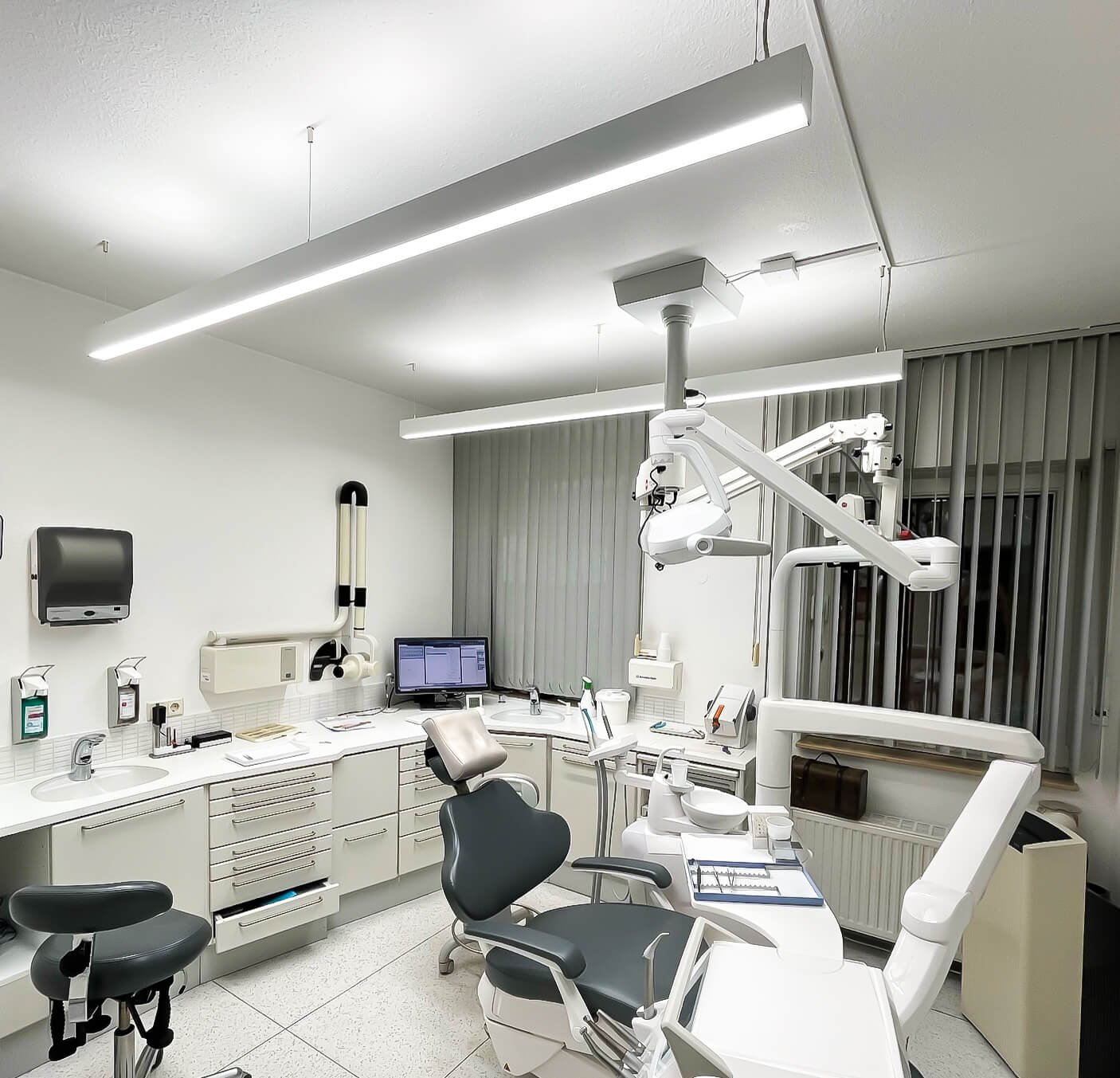Un éclairage inadéquat dans les salles de traitement dentaire entraîne une fatigue oculaire ce qui engendre une fatigue générale. L’éclairage à spectre complet DentLed a été spécifiquement développé comme lumière de travail optimale pour les salles de traitement dentaire.
